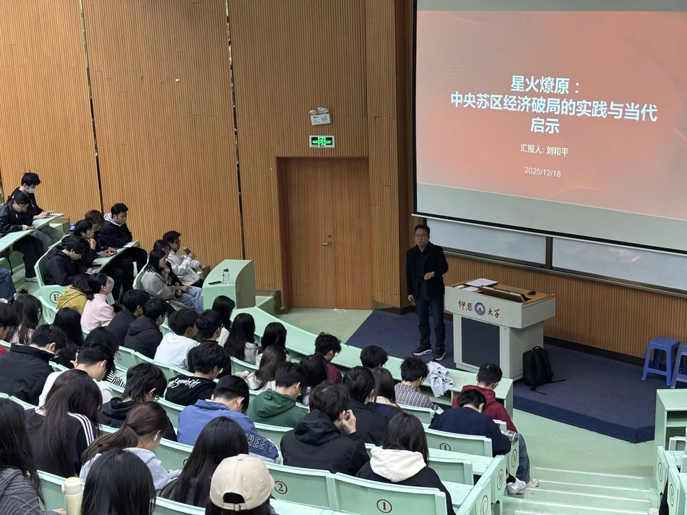 在当代启示环节,刘教授深入剖析了苏区经济实践的现实价值,强调制度创新、差异化资源利用、政府与市场协同、民生导向等经验,对当代区域经济转型、治理现代化及市场营销领域的创新发展具有重要借鉴意义。他表示,中央苏区在极端困境中展现的统筹思维与创新精神,为新时代破解发展难题提供了宝贵的历史智慧。