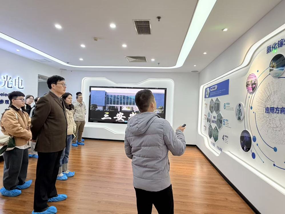 活动伊始,三安企业负责人向师生详细介绍了公司发展历程及产业布局。作为全球领先的半导体光电器件龙头企业,三安光电在LED外延芯片、射频器件、Mini/Micro LED等领域取得突破性成果,其智能化生产体系与工业工程专业高度契合。随后,师生们深入车间,实地观摩自动化生产线运作流程,生产线负责人详细介绍了工作内容和生产过程,让师生直观感受技术转化成果。