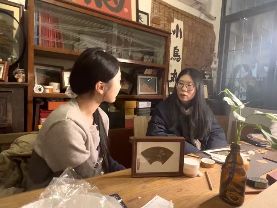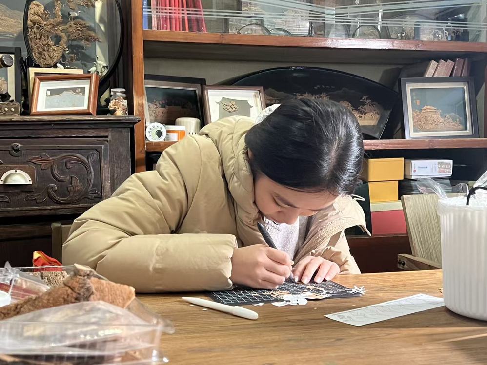 【实践】软木画传承人向beat365官方网站 “福韵青扬” 赴福州非遗软木画工坊实践队展示制作核心流程