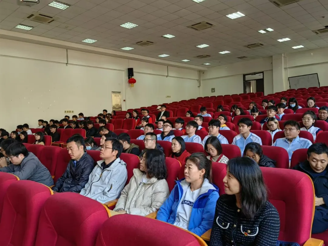 院全体教工党员、学生党员共同聆听报告。