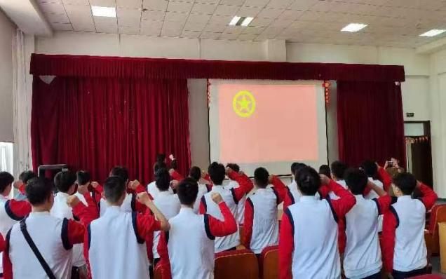 观影活动结束后,同学们高举右拳庄严宣誓,共同重温了入团誓词。入团时振聋发聩的庄严誓词如今又在耳边回响。此刻,鲜红的团旗在每位共青团员心中飘扬。同学们在铿锵誓言中回忆起入团时的初心,感悟作为共青团员所肩负的责任与使命。