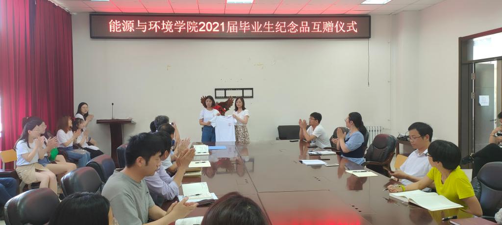 每年凤凰花开之时,便是我们褪去青涩懵懂,迈向成熟稳重,开启另一段人生旅程之际。四年的校园生活回荡在脑海,有欢笑、有悲伤、有感动、有难忘。泪水交织着汗水,闪现着一个个令人永远怀念、独一无二的美好记忆。于2021年6月23日13:30,2021届毕业生代表和学院全体老师在能源楼三楼会议室进行了买球官方网站2021届毕业生纪念品互赠仪式,留下了珍贵回忆。