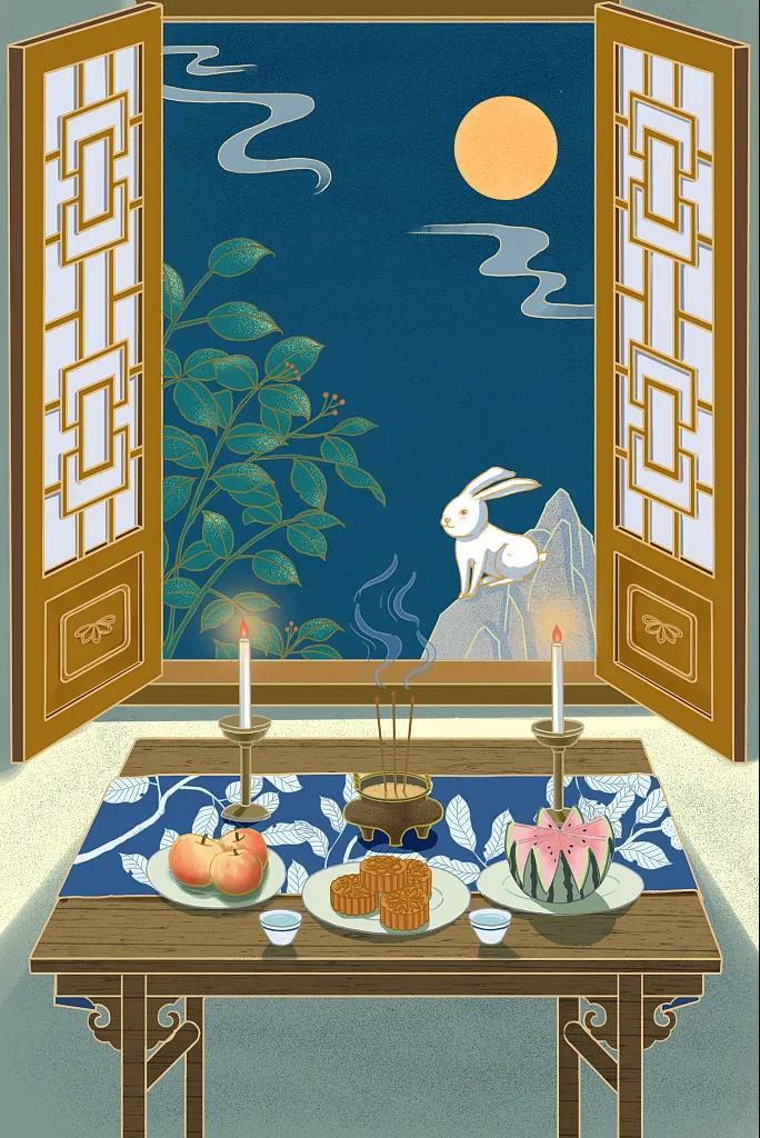 除了祭月,中秋节自古就有赏月的习俗,到了周代,每逢中秋夜都要举行迎寒和祭月,设大香案,摆上吃食和酒,一群人围在一起饮酒赏月。