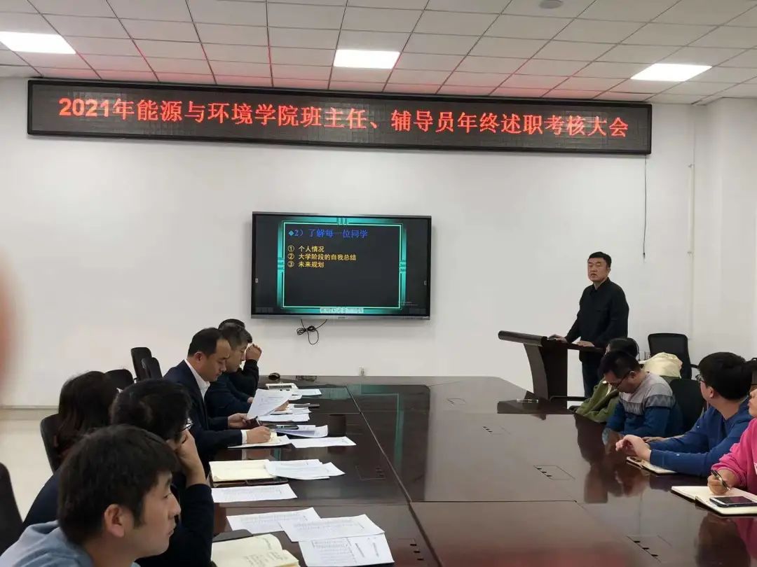 各位班主任、辅导员结合本年度学业指导、学风建设、学生日常管理、就业指导等完成情况,按照年级顺序依次进行述职。同时,查摆目前存在的问题,提出了今后的工作打算及工作设想。述职的同时,老师们也分享着自己在学生管理工作中的经验,并交换意见。
