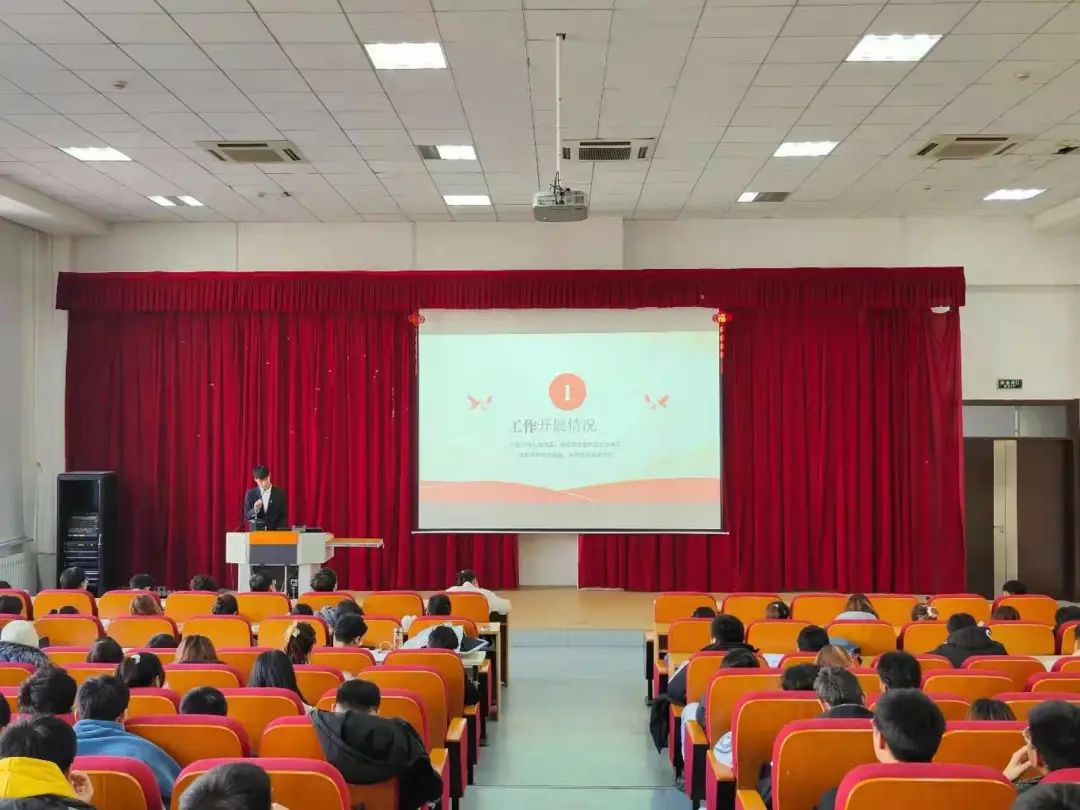 同时,由买球官方网站学生会执行主席王涵针对学生会本年度整体工作、学生会组织文化、学生权益维护、学院文化建设及学生会思政引领工作开展作出总结,并对下一年度工作安排做出计划,在未来继续保持学生会的先进性,以更加饱满的工作热情、更加昂扬的精神状态、更加扎实的工作能力,打造一个全心全意为同学服务的学生会。
