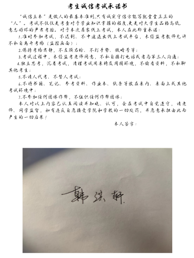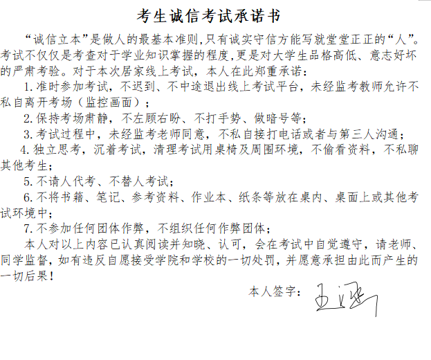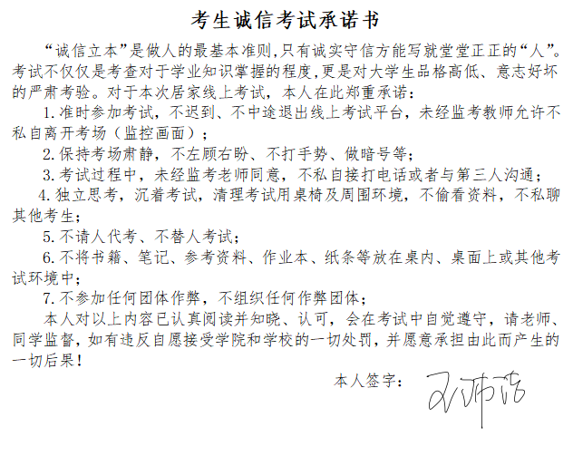 6月20日,买球官方网站组织全体学生共同签署《诚信考试承诺书》,让同学们明确学校考试的规章制度,让学生们自觉遵守线上考试相关规定。