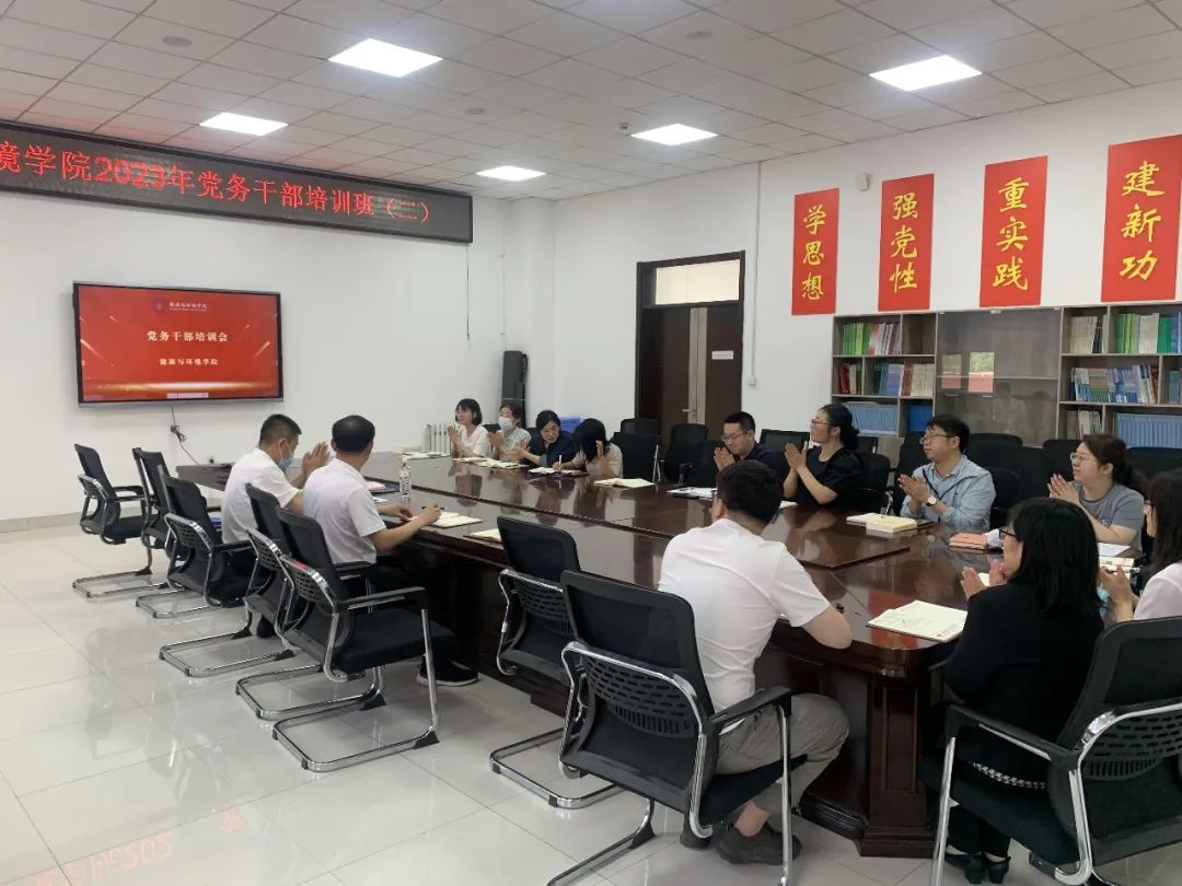 4月以来,学习贯彻习近平新时代中国特色社会主义思想主题教育形成澎湃热潮。买球官方网站党委牢牢把握“学思想、强党性、重实践、建新功”的总要求,力求以学铸魂、以学增智、以学正风、以学促干,下功夫见实效,推动主题教育往深里走、往 实里走、往心里走,深刻领悟“两个确立”的决定性意义。近日,买球官方网站党委召开第二期基层党务干部培训班,邀请校党委组织部葛志兴老师作专题讲授,会议由学院党委书记季志刚主持,学院各支部书记及委员参加培训。