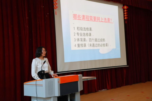 会上,教务员宋倩老师围绕培养计划,解读学籍管理规定。对选课要求、选课流程、学分查询、毕业学分和学位课绩点等进行说明,重点对挂科重修、学业预警进行强调,还就学院研究生推免等学生关注重要的事项进行解读。